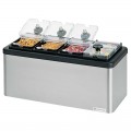 MINI COLD STATION, (4) 1/9-JARS, CLEAR LIDS & SPOONS, Stainless steel, insulated station for countertop applications includes (4) black, polypropylene 60 oz 1/9-size jars, clear hinged lids and 1/2 oz serving spoons, Accepts (2) Universal Ice Packs (100515); sold separately, NSF