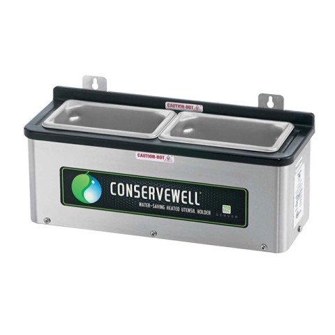 CW, CONSERVEWELL™ MOUNTED UTENSIL HOLDER, keeps utensils above 140°F, with key slot mounting brackets and (2) short-handled, utensil compartments: 1/9-size, 4" deep stainless steel, pans (90106), for use with plastic handled utensils and non-gel-filled dishers, 400 watts, 120v/60/1-ph, 3.3 amps, cord, NEMA 5-15P, cULus, NSF