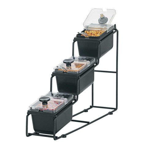 WW, WIREWISE™ TIERED JAR STATION, 3-tier, countertop, includes: (3) 41 oz. 1/9-size jars, (3) clear hinged lids and (3) serving spoons, lightweight, wire-frame design, (4) non-skid feet, black