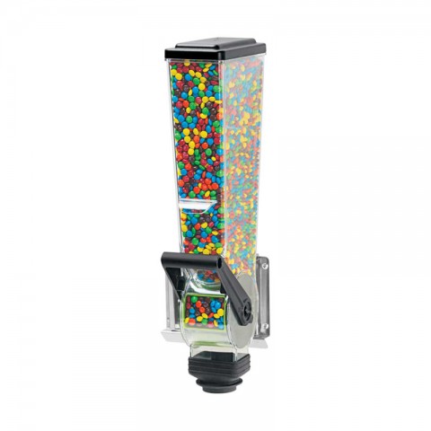 SLMDFD, SLIMLINE™ DRY FOOD & CANDY DISPENSER, single, 2 liter, wall-mounted, station includes (1) clear 2 liter hopper and 3-1/2"W stainless steel wall-mount bracket, serves preset portions of candies, toppings or mix-in ingredient, accurate dispensing at 1/2, 3/4, 1 or 1-1/2 oz. portions, ADA compliant (does not require a twisting wrist motion or tight grasping to dispense), NSF