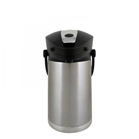 Stanley® Commercial ErgoServe® Airpot, 2.2 liter (74.4 oz.), 6-1/2" x 8-1/2" x 13", retention: 4-6 hours, stainless steel liner, lever style, black lid, zinc die-cast lever, ergonomic carry handle, Ferrostat™ vacuum insulated, hand wash (do not submerge), 18/8 stainless steel, brushed finish, NSF (Priced per each, packed 4 each per case)