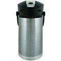 Stanley® Commercial ErgoServe® Airpot, 2.5 liter (84.5 oz.), 6-1/2" x 8-1/2" x 13-1/2", retention: 4-6 hours, stainless steel liner, lever style, black lid, zinc die-cast lever, ergonomic carry handle, Ferrostat™ vacuum insulated, hand wash (do not submerge), 18/8 stainless steel, brushed finish, NSF (Priced per each, packed 4 each per case)