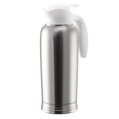 Service Ideas ErgoServ® Stainless Vacuum Insulated Creamer, 1-liter, push button lid, brushed stainless and white
