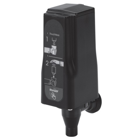 Touchless Spigot, motion sensored to detect cup or hand, LED lights, battery powered, black plastic, for Thermal Containers, Round and Slim Tea Urns, and Flame Free Thermo-Urns, NSF, Made in USA