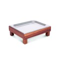 Ze Pe Buffet Serving Tray, 10.4"D x 12.8"W x 5"H, display 11", small, stainless steel tray, rectangular, walnut wood, (contact factory for price)
