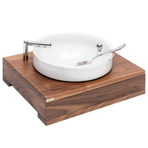 Ze Pe Buffet Chilled Bowl, 12.75"D x 10.4"W x 8"H, round, white, wood base, walnut, (contact factory for price)