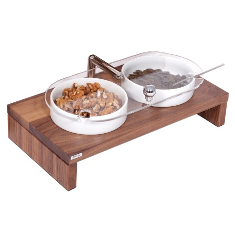 Ze Pe Buffet Risers, 12.75"D x 6.75"W x 4.75"H, low rise display, double bowl, walnut wood, rectangular, (contact factory for price)