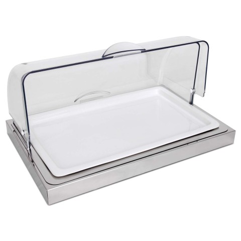 Ze Pe Quadro Modern Inox Buffet Porcelain Roll Top Cloche, 23.5"D x 14.5"W x 11"H, tray 21X13 w/refrig pk, white, (contact factory for price)