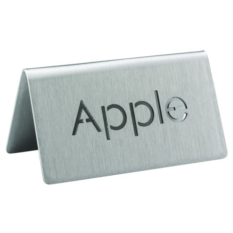 Beverage ID Tent, "Apple", 1-1/2"H x 3"W, laser-cut, dishwasher safe (hand washing is recommended), 18/8 stainless steel, brushed finish, Made in USA (Priced per each, packed 6 each per case)