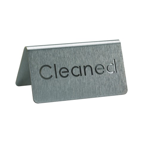 Beverage ID Tent, "Cleaned", 1-1/2"H x 3"W, laser-cut, dishwasher safe (hand washing is recommended), 18/8 stainless steel, brushed finish, Made in USA (Priced per each, packed 6 each per case)