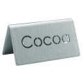 Beverage ID Tent, "Cocoa", 1-1/2"H x 3"W, laser-cut, dishwasher safe (hand washing is recommended), 18/8 stainless steel, brushed finish, Made in USA (Priced per each, packed 6 each per case)