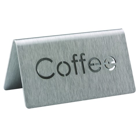 Beverage ID Tent, "Coffee", 1-1/2"H x 3"W, laser-cut, dishwasher safe (hand washing is recommended), 18/8 stainless steel, brushed finish, Made in USA (Priced per each, packed 6 each per case)