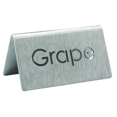 Beverage ID Tent, "Grape", 1-1/2"H x 3"W, laser-cut, dishwasher safe (hand washing is recommended), 18/8 stainless steel, brushed finish, Made in USA (Priced per each, packed 6 each per case)