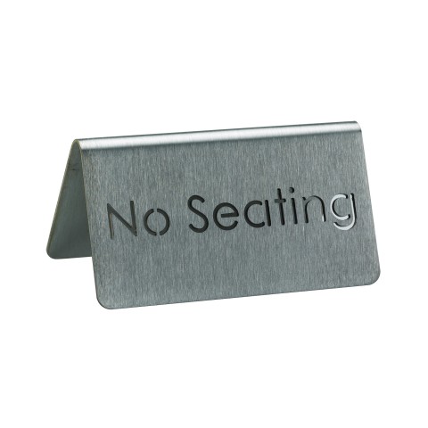 Beverage ID Tent, "No Seating", 1-1/2"H x 3"W, laser-cut, dishwasher safe (hand washing is recommended), 18/8 stainless steel, brushed finish, Made in USA (Priced per each, packed 6 each per case)
