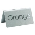 Beverage ID Tent, "Orange", 1-1/2"H x 3"W, laser-cut, dishwasher safe (hand washing is recommended), 18/8 stainless steel, brushed finish, Made in USA (Priced per each, packed 6 each per case)