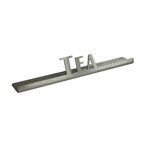 Beverage ID Sign, "Tea", 1"H x 6-1/2"W, laser-cut, dishwasher safe (hand washing is recommended), 18/8 stainless steel, brushed finish, Made in USA (Priced per each, packed 6 each per case)