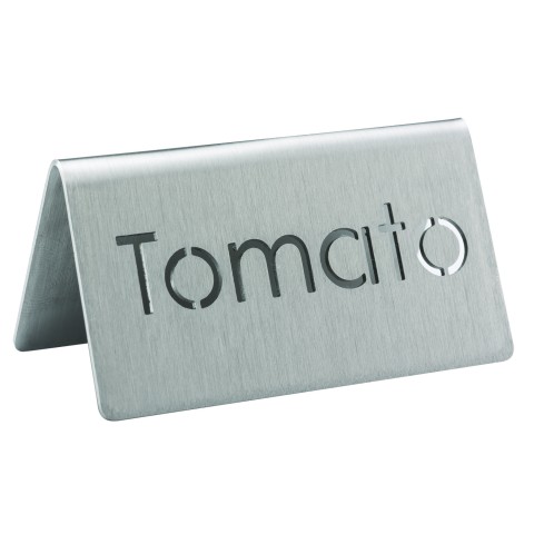 Beverage ID Tent, "Tomato", 1-1/2"H x 3"W, laser-cut, dishwasher safe (hand washing is recommended), 18/8 stainless steel, brushed finish, Made in USA (Priced per each, packed 6 each per case)