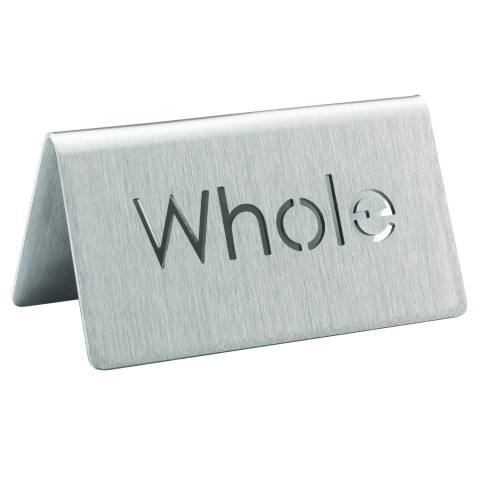Beverage ID Tent, "Whole", 1-1/2"H x 3"W, laser-cut, dishwasher safe (hand washing is recommended), 18/8 stainless steel, brushed finish, Made in USA (Priced per each, packed 6 each per case)
