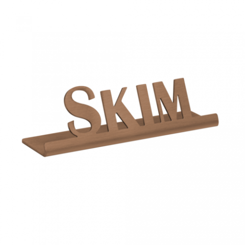 Table Sign, "Skim", 1"H x 3-1/2"W, laser-cut, dishwasher safe (hand washing is recommended), stainless steel, rose gold, Made in USA