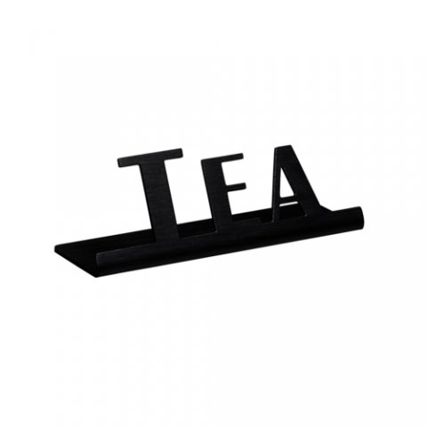 Table Sign, "Tea", 1"H x 3-1/2"W, laser-cut, dishwasher safe (hand washing is recommended), stainless steel, black onyx, Made in USA