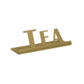 Table Sign, "Tea", 1"H x 3-1/2"W, laser-cut, dishwasher safe (hand washing is recommended), stainless steel, vintage gold, Made in USA