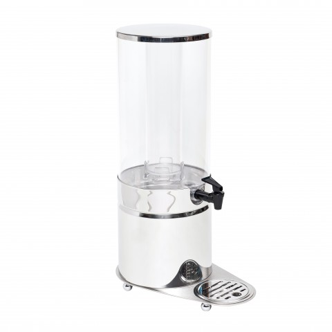 Ze Pe Beverage Dispenser, 4 liter (135 oz.), 13" x 7-1/2" x 21-1/4", single, with ice chamber, drip tray, non-drip faucet, co-polyester container, 18/10 stainless steel base & lid, polished finish, BPA free, Made in Italy (Priced per each, packed 6 each per case) (contact factory for price)