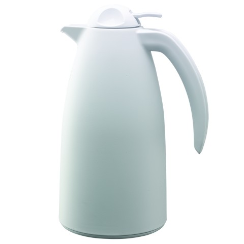 Alpha Server, 1 liter (33.8 oz.), 7-3/4" x 5-1/2" x 11-1/4"H, retention: 6-8 hours, hand wash, glass-lined, vacuum insulated, push button style, white lid, plastic, white (Priced per each, packed 6 each per case)