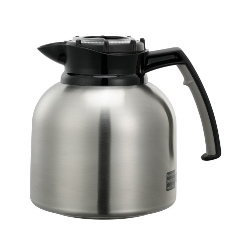 Brew 'N' Pour® Carafe, 1.9 liter (64.2 oz.), 6-1/2" x 8-1/2" x 7-3/4"H, heat retention 4-6 hours, ergonomic handle, dishwasher safe, vacuum insulation, black brew-thru clock dial freshness tracking lid, 18/8 stainless steel, brushed finish, NSF (Priced per each, packed 6 each per case)