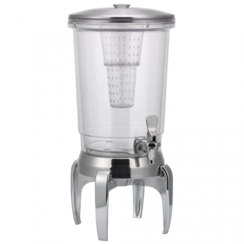 Beverage Dispenser, 3 gallon (384 oz.), 12" x 13" x 22-1/4", double wall, infusion tube, clear, BPA Free Tritan container (dishwasher safe), stainless steel base & lid, modern legs, polished stainless finish, NSF