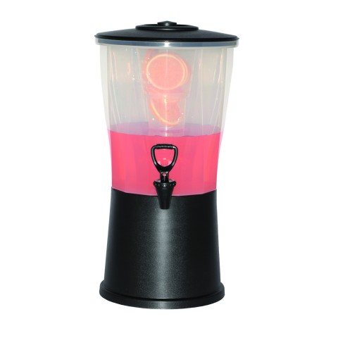 Beverage Dispenser, 3 gallon (384 oz.), 12" x 11" x 21-1/2", round, includes: infuser tube & spigot, dishwasher safe, clear polypropylene container, black ABS lid & base, NSF (parts available) (Priced per each, packed 6 each per case)