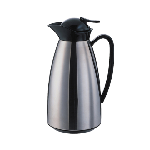 Classy™ Vacuum Carafe, 0.6 liter (20 oz.), 5" x 6-3/4" x 9", retention: 6-8 hours, hand wash, glass liner, black plastic handle, collar and push-button lid, stainless steel, brushed finish (Priced per each, packed 6 each per case)