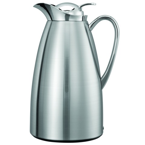 Classy™ Vacuum Carafe, 1 liter (33.8 oz.), 5-1/2" x 6-1/2" x 10", retention: 6-8 hours, stainless push button lid, hand wash only, glass liner, zinc plated handle and collar, includes decaf indicator sock, stainless steel, brushed finish (Priced per each, packed 6 each per case)