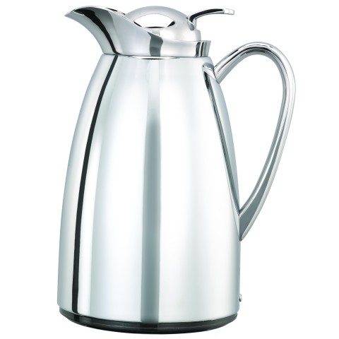 Classy™ Vacuum Carafe, 0.6 liter (20 oz.), 5" x 6-1/2" x 8-3/4", retention: 6-8 hours, stainless push button lid, hand wash only, glass liner, zinc plated handle and collar, includes decaf indicator sock, stainless steel, polished finish (Priced per each, packed 6 each per case)