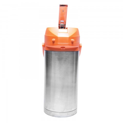 Airpot, 3.7 liter (125 oz.) 6-3/4" x 8-3/4" x 15", retention: 4-6 hours, vacuum insulated, lever style, stainless steel liner, orange lid, hand wash (do not submerge), 18/8 stainless steel, brushed, NSF (Priced per each, packed 6 each per case)
