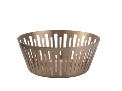 Bread Basket, 9" dia. x 3.5"H, round, 18/8 stainless steel, brushed finish, rose gold (priced per each, packed 6 each per case)