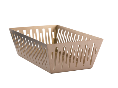 Bread Basket, 6.25"W x 10.25"D x 3.25"H, rectangle, 18/8 stainless steel, brushed finish, rose gold (priced per each, packed 24 each per case)