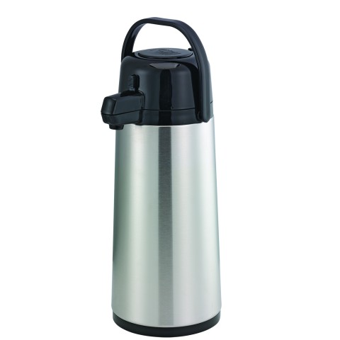 Eco-Air® Airpot, 1.9 liter (64.2 oz.), 6" x 8" x 15", retention: 6-8 hours, smooth body, glass liner, pump style, black lid, vacuum insulated, hand wash (do not submerge), stainless steel, brushed, NSF (Priced per each, packed 6 each per case)