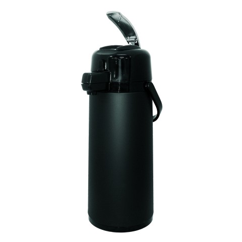 Eco-Air® Airpot, 2.2 liter (74.4 oz.), 6" x 8 x 16", retention: 6-8 hours, smooth body, glass liner, lever style, black lid, vacuum insulated, hand wash (do not submerge), metal, black, matte finish (Priced per each, packed 6 each per case)