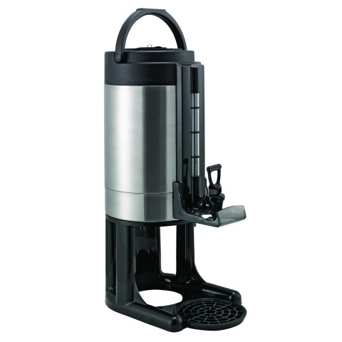 Thermal Container, 1.5 gallon (192 oz.), 14" x 9-1/4" x 23-1/4", brew-thru top, heat retention: 4-6 hours, stainless steel interior, splash guard on spigot, handles on lid, molded-in rubber carry handle, removable base, two replacement sight glass tubes & brush stored behind capacity gauge, drip tray, vacuum insulation, hand wash, GRAV, brushed finish, NSF (Priced per each, packed 6 each per case)