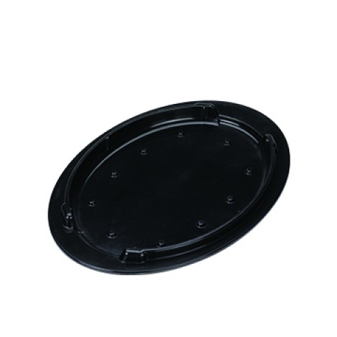 Hot Solutions™ Insulated Skillet Holder Only, 10" x 7-1/2" x 3/4", oval well, side rails, rolled edge, notched foot, stackable, fits 10" x 7" oval fajita skillet, 500°F temperature capacity, dishwasher safe, plastic with polyester blend insulation, black (Priced per each, packed 6 each per case)