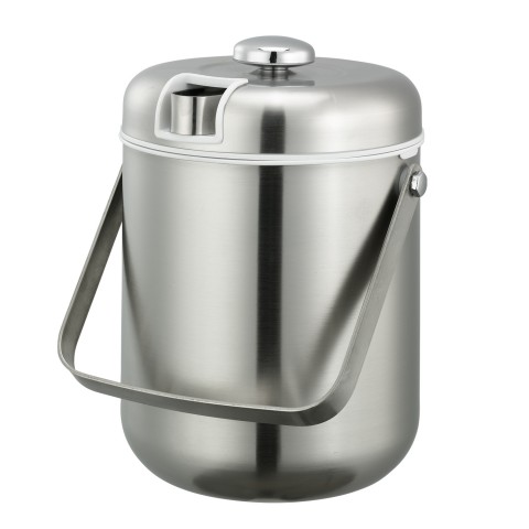 Ice Bucket, 1.5 liter (50.7 oz), 6" x 6" x 8", round, with handle, double wall, with drain tray, lid & tongs, hand wash, 18/8 stainless steel, brushed finish (Priced per each, packed 6 each per case)