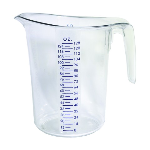 Measuring Pitcher, 1 gallon (128 oz.), 10" x 7-1/2" x 10", with handle, dishwasher safe, blue graduated markings with 4 oz. increments, BPA free Tritan™, clear, ETL, NSF (Priced per each, packed 6 each per case)