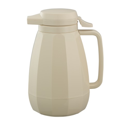New Generation® Server, 0.6 liter (20 oz.), 4" x 5-3/4" x 7-3/4", retention: 2-3 hours, faceted body, welded seams, reinforced handle, dishwasher safe, double-wall, foam insulated, push-button lid, non-drip spout, BPA free, ABS plastic, almond, Made in USA (Priced per each, packed 6 each per case)