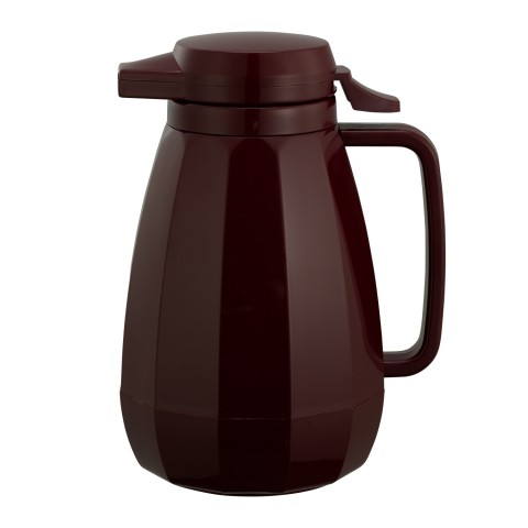 New Generation® Server, 0.6 liter (20 oz.), 4" x 5-3/4" x 7-3/4", retention: 2-3 hours, faceted body, welded seams, reinforced handle, dishwasher safe, double-wall, foam insulated, push-button lid, non-drip spout, BPA free, ABS plastic, burgundy, Made in USA (Priced per each, packed 6 each per case)