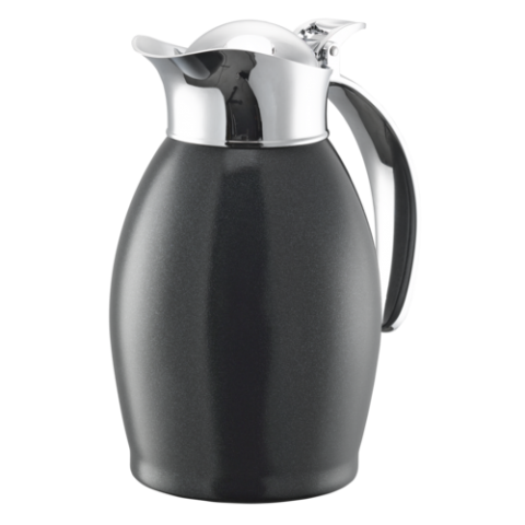 Service Ideas Nicollet Series Vacuum Insulated Carafe, stainless, 0.6-liter, flip-top lid, radiant black