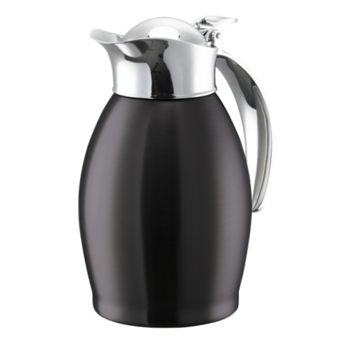 Service Ideas Nicollet Series Vacuum Insulated Carafe, stainless, 0.6-liter, flip-top lid, black onyx