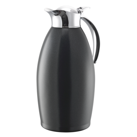 Service Ideas Nicollet Series Vacuum Insulated Carafe, stainless, 1.5-liter, flip-top lid, radiant black