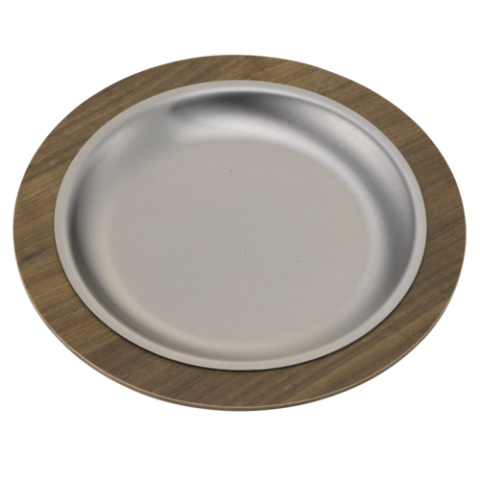 Service Ideas Round Thermo-Plate® Platter Small Holder, dark wood, stainless insert