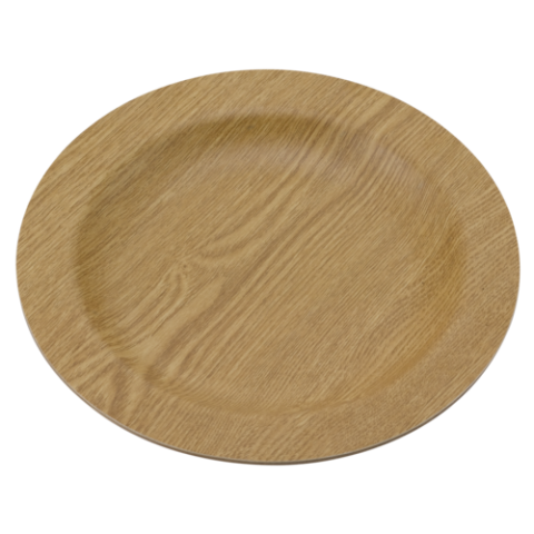 Service Ideas Round Thermo-Plate® Platter Small Holder, light wood, stainless insert