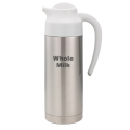 SteelVac™ Vacuum Creamer, 1 liter (33.8 oz.), 3-1/2" x 6" x 11-1/2", "Whole Milk" etched on side, retention: 4-6 hours, dishwasher safe, smooth body, double-wall, unbreakable liner, white screw-on lid, stainless steel base, brushed, NSF